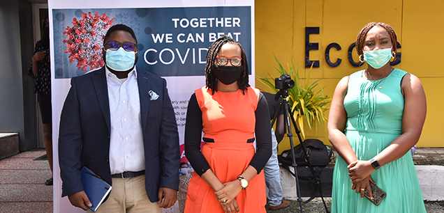 (L-R) Dr. Abosede Lewu (Executive Director, Girslaide Initiative), Bruno Akpaibor (Cluster Head, Ethics Risk & Compliance, Novartis), Osayi Alile (Chief Executive Officer, ACT Foundation), Ogonna Oraegbunam (Cluster Head, Patient Access & Public Affairs, English West Africa, Novartis), Ndifreke Okwuegbunam (Director of Grants and Programs, ACT Foundation) at the launch of the Novartis-ACT Foundation COVID-19 Response Initiative at the ACT Foundation Office in Lagos.